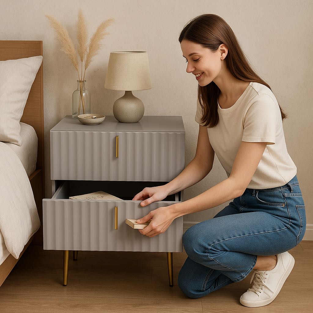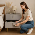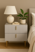 Fluted Modern Nightstand 2-Drawer Glossy Light Grey bedside table