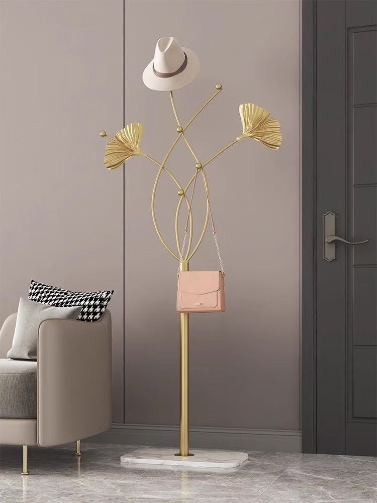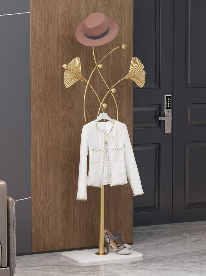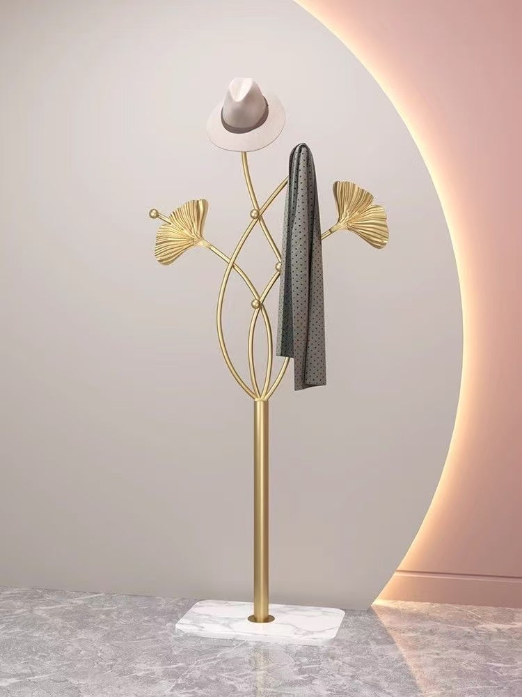 Luxury Modern Golden Metal Coat Rack With Thickened Marble Base For Entrance Hall Bedroom