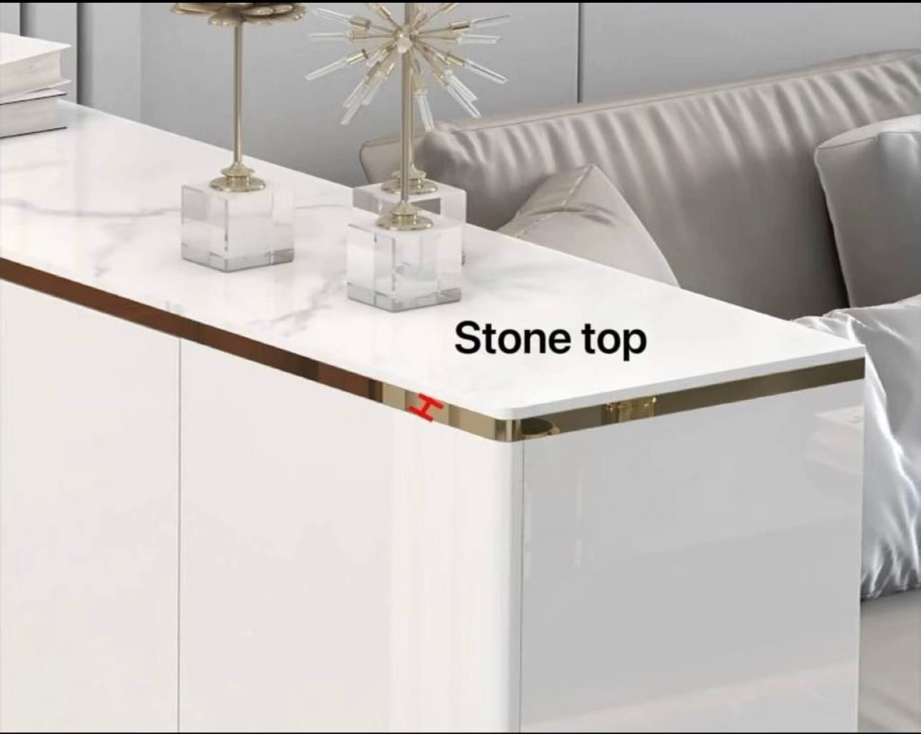 The G-Stone Shoe Rack is made by the best craftsmen from high quality materials, sintered stone top, solid wood, metal legs and premium hardware. It is made using the push-to-open system for easy opening of the facades by pressing. The shoe rack is made without visible doors of fasteners and consists of 2 closed sections for easy storage. An elegant design looks very modern in the interior. The sintered stone countertop looks unusual and attracts attention. White cabinet with gold trims and gold metal legs is the perfect solution for any modern living room.