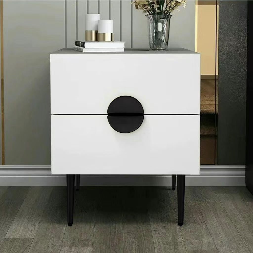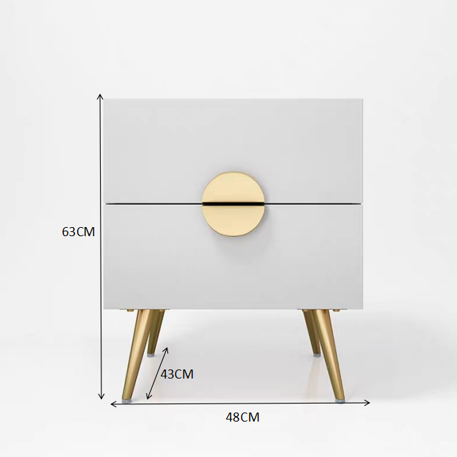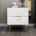 Modern White Glossy Finish Wooden Nightstand,Bedside Table With Golden And Black Legs,Two Deep Drawers With Golden And Black Handles, For Bedroom Storage And Organization,Bedroom Organizers