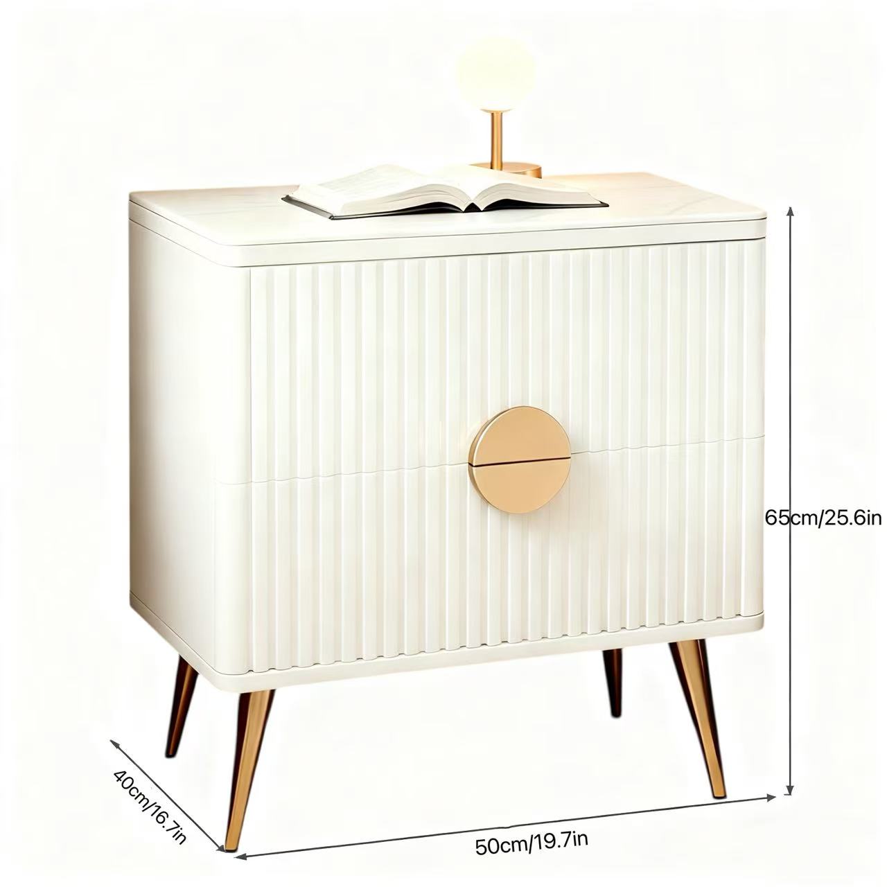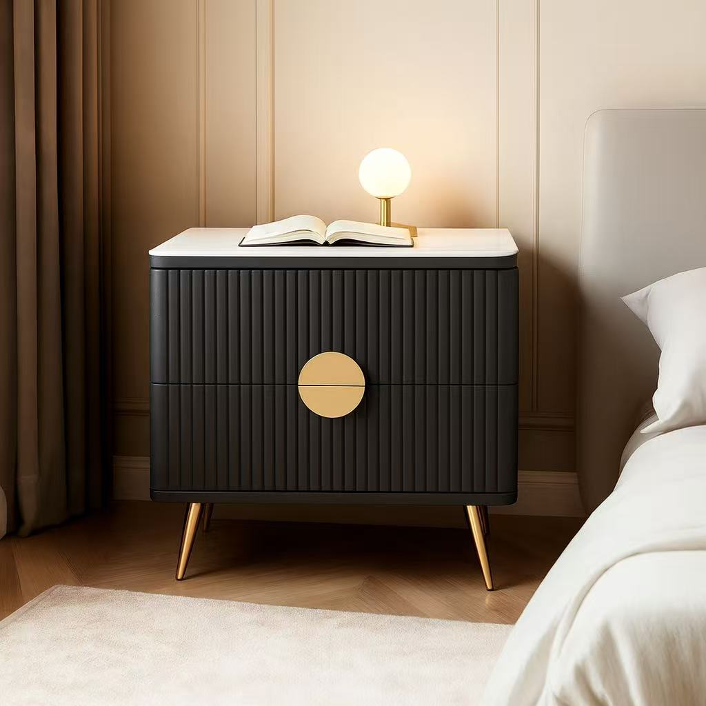 Sintered Stone Top – 2-Drawer Nightstand Dark Grey