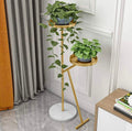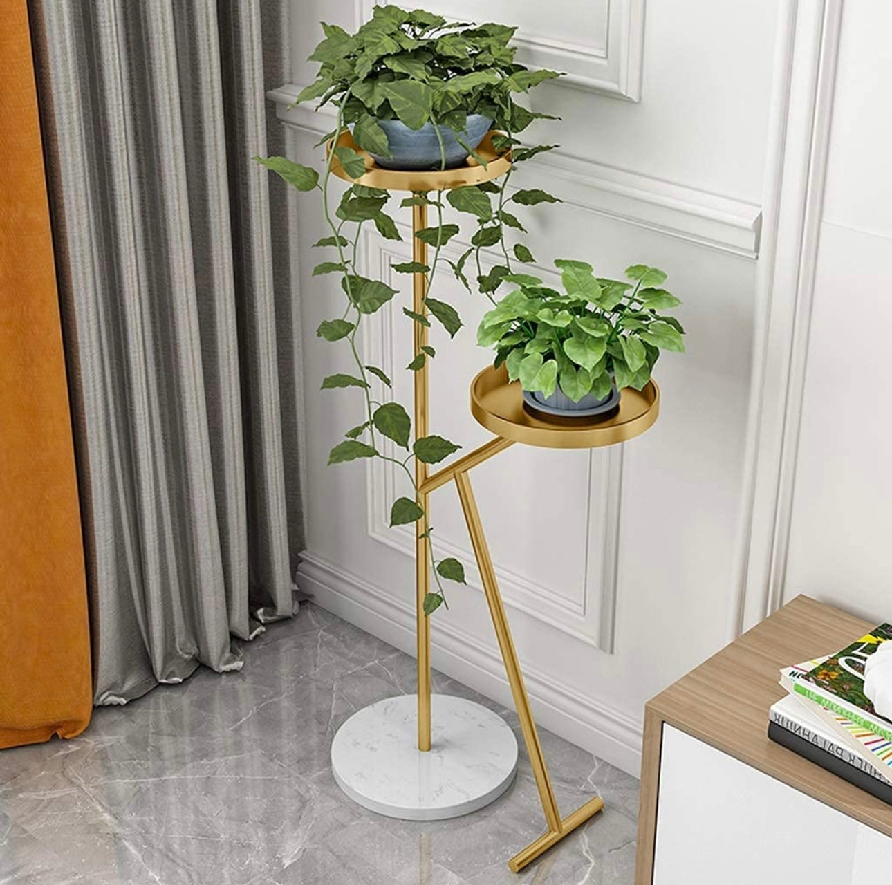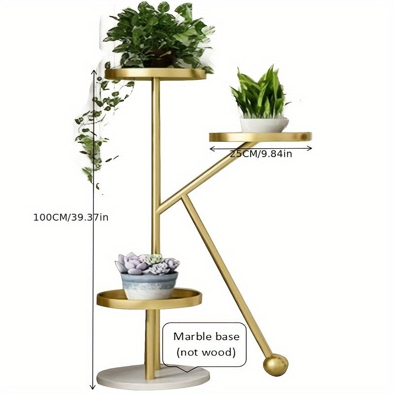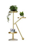 Stable Golden Metal Iron K-Shaped Flower Stand With Mable Base Indoor&outdoor Balcony Plant Flower Rack